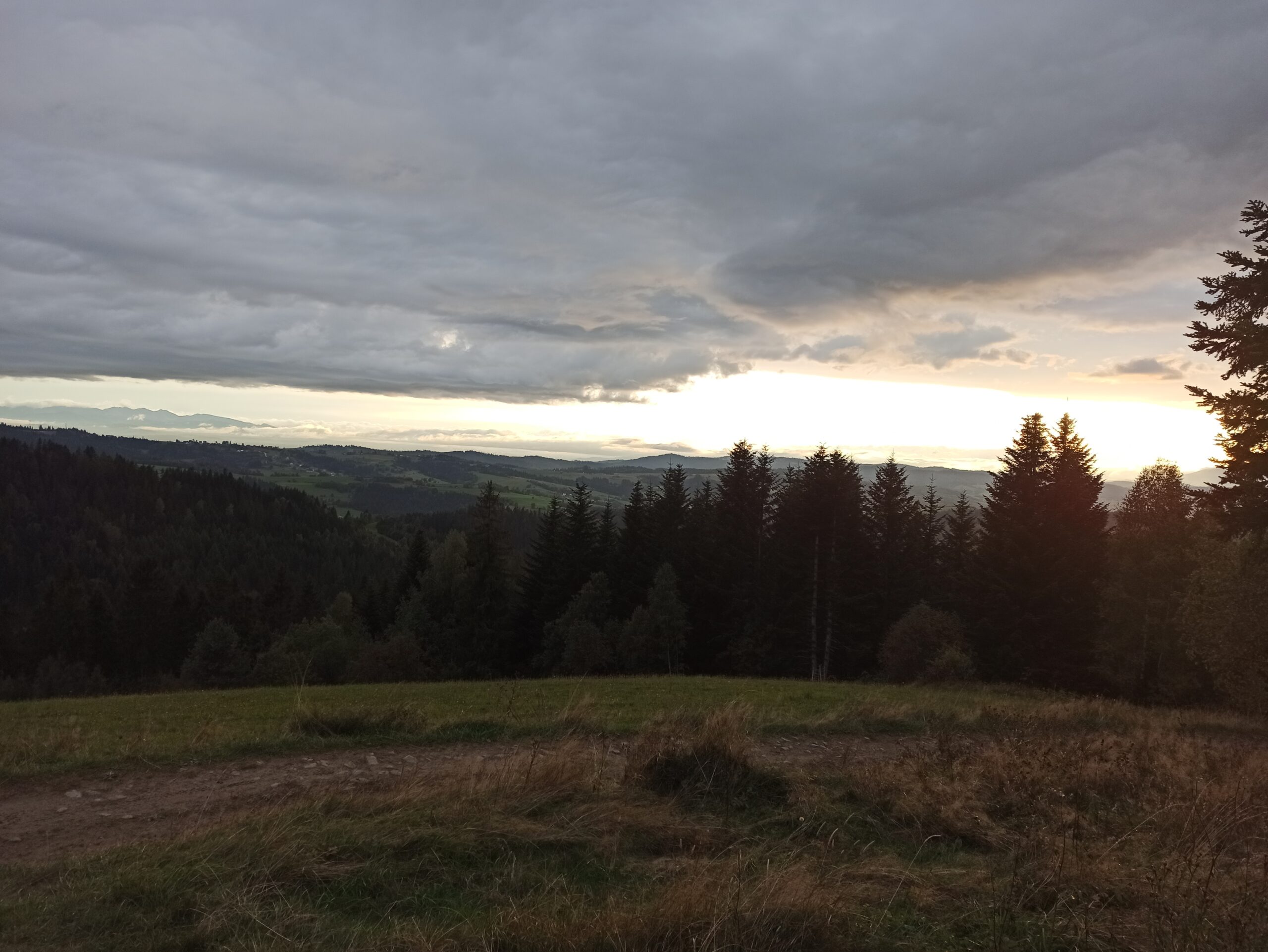 Jako że czułem się bardzo do przodu z trasą po wczorajszych 38 kilometrach, to pozwoliłem sobie jeszcze zasiąść na spokojnie w schroniskowej jadalni na kolejną kawę, aby w spokoju pokontemplować czekającą mnie trasę i może jeszcze doczekać przebudzenia układu pokarmowego wraz z gotowością do zrzucenia zbędnego balastu. Żal by było nie wykorzystać ogarniętej łazienki, póki jest dostępna. To się udało, ale przyglądając się mapie zaczął mi się w głowie klarować trochę niepokojący mnie wniosek. Z rogu mapy zaczęła na mnie łypać Babia Góra – najwyższy i najciekawszy szczyt na całej mojej trasie. Wciąż była daleko, ale jasne się stało, że dojdę do niej nazajutrz i tutaj pojawiał się dylemat. Wiedziałem od mamy, że Babia charakteryzuje się przede wszystkim olbrzymią popularnością wśród turystów oraz bardzo kapryśną pogodą, a wiedziałem ze sprawdzanych przed wyjazdem prognoz, że ta będzie się coraz bardziej pogarszać. Widok za oknem to potwierdzał. Dlatego najmądrzej byłoby wyruszyć na Babią najwcześniej, jak tylko się da, najlepiej prosto ze schroniska znajdującego się bezpośrednio pod nią. A to było oddalone od mojej obecnej pozycji o – uwaga, uwaga – 38 kilometrów.