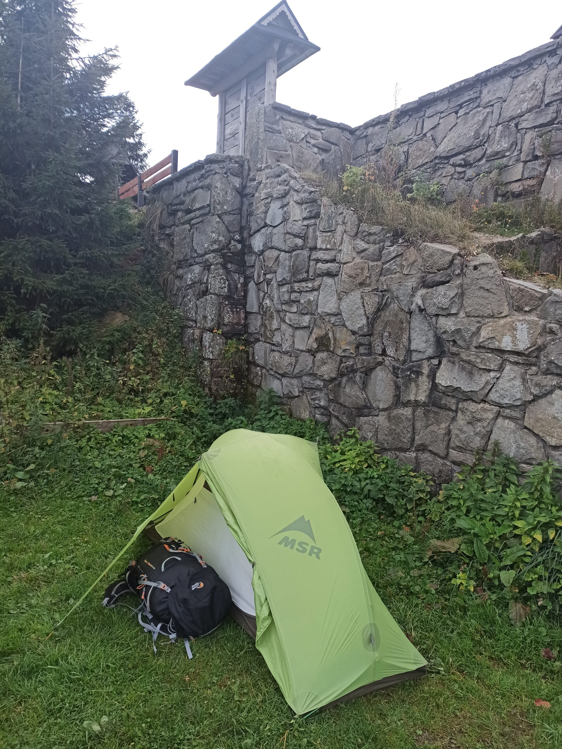 Do schroniska dotarłem wczesną porą, bo poprzedni nocleg był oddalony o zaledwie dwie godziny marszu. Dzień był chłodny, wietrzny i pochmurny. Ogólna atmosfera nie zachęcała do spędzania godzin na klęczkach wśród otaczających halnych łąk w poszukiwaniach małych grzybków, ale brak było alternatyw. Najwyżej nic nie znajdę, zmarznę i zrobię sobie wieczór przy bardziej tradycyjnych używkach – ciepłym jadle zapijanym piwem. Ciepłe jadło zresztą i tak wskoczyło w przełyk na zachętę i podniesienie morali – kolejny placek po węgiersku z gulaszem. Znowu dobry, ale tym razem, być może pod wpływem podjętej mistycznej misji, jakieś wątpliwości zaczęły unosić się nad sensem danej samemu sobie na ten wyjazd dyspensy od wegetarianizmu. Czy naprawdę było konieczne szukanie dla siebie wymówki usprawiedliwiającej jedzenie truchła? Czy te skrawki ściętych temperaturą mięśni w sosie, które żułem, były faktycznie takim skarbem i dobrodziejstwem dla mojego podniebienia i organizmu? Coś nie mogłem znaleźć na to przekonujących argumentów, więc dokończyłem danie z umiarkowaną przyjemnością i czym prędzej wytoczyłem się na zewnątrz rozbić swój namiot i ruszać na łąki.