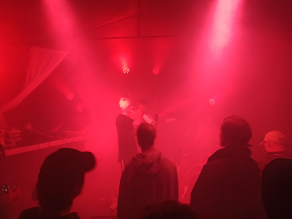 Z głośników jebnęło taką ścianą częstotliwości, że każda normalniejsza osoba od razu się trochę wycofała robiąc miejsce dla true zryciuchów ruszających we frenetyczne pogo. Perkusista zaczął walić w talerze z taką zapalczywością, jakby jego głównym celem na ten wieczór było połamać na nich swoje pałki. Przesterowany (a jakże!) głos Bartusia zaczął wykrzykiwać takie frazy jak “Nawet mój pies wali xanax” lub “kurwa, gówno, YOLO, sweg – elektrośmieci beng, beng, beng” ilustrując to cielesnymi konwulsjami swojego posiadacza.